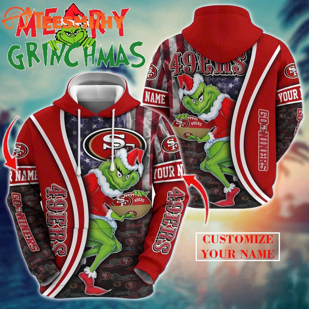 Special Edition San Francisco 49ers x The Grinch Christmas Custom Hoodie Shirt The 3D Shirt is a fashion statement that goes beyond the ordinary. Using advanced printing technology, it brings designs to life with depth and vividness. Crafted from high-quality materials, it offers comfort and durability. The three-dimensional graphics create a captivating effect that’s perfect for casual wear or making a bold statement.
