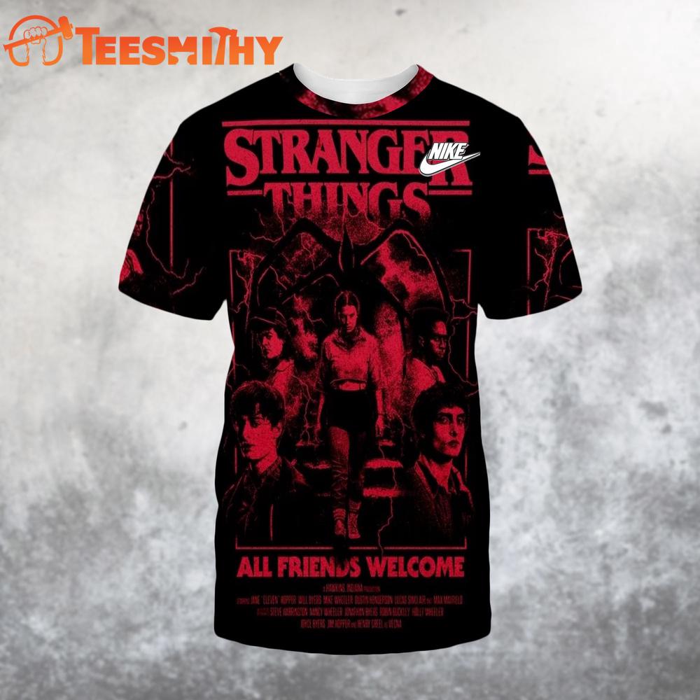 Stranger Things Season 5 All Friends Welcome Movies 2025 All Over Print Shirt The 3D Shirt is a fashion statement that goes beyond the ordinary. Using advanced printing technology, it brings designs to life with depth and vividness. Crafted from high-quality materials, it offers comfort and durability. The three-dimensional graphics create a captivating effect that’s perfect for casual wear or making a bold statement.