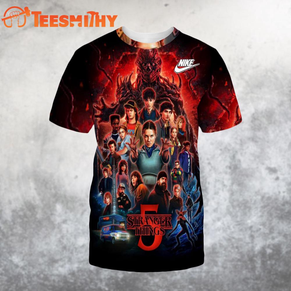 Stranger Things x Kyle Lambert Poster Season 5 Art 3D Shirt The 3D Shirt is a fashion statement that goes beyond the ordinary. Using advanced printing technology, it brings designs to life with depth and vividness. Crafted from high-quality materials, it offers comfort and durability. The three-dimensional graphics create a captivating effect that’s perfect for casual wear or making a bold statement.