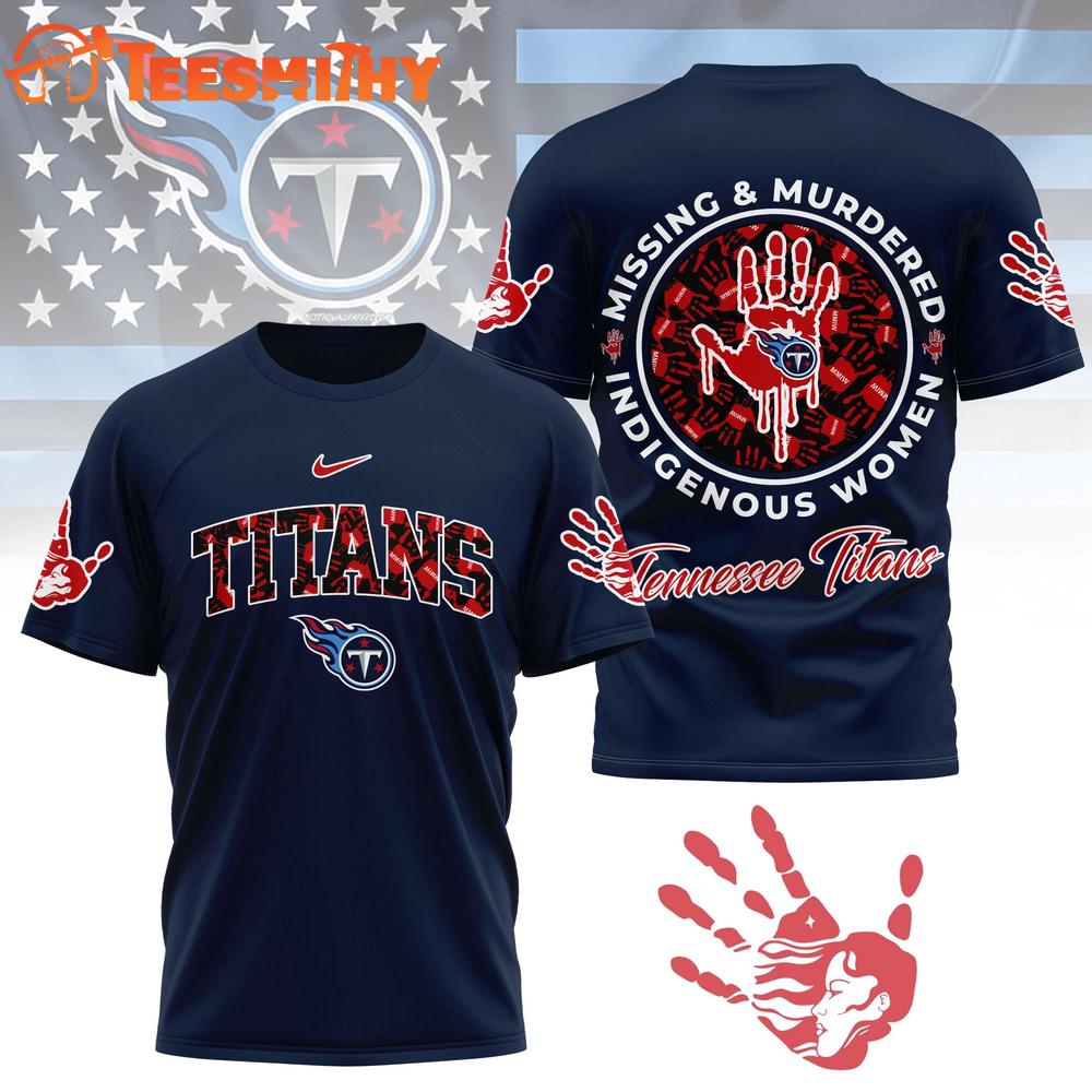 Tennessee Titans 2026 NFL Missing Murdered Indigenous Women Awareness 3D Shirt The 3D Shirt is a fashion statement that goes beyond the ordinary. Using advanced printing technology, it brings designs to life with depth and vividness. Crafted from high-quality materials, it offers comfort and durability. The three-dimensional graphics create a captivating effect that’s perfect for casual wear or making a bold statement.