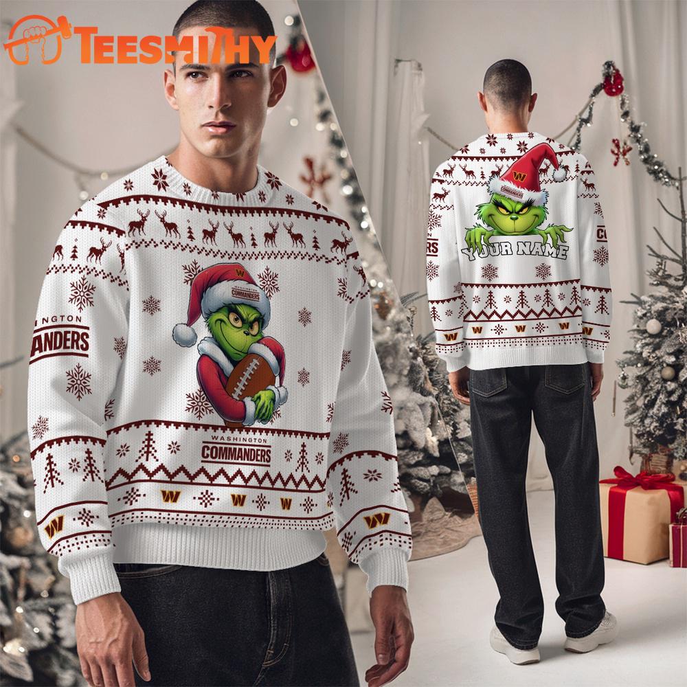 Photos Of Washington Commanders NFL Grinch Santa Hats Ugly Christmas Sweater